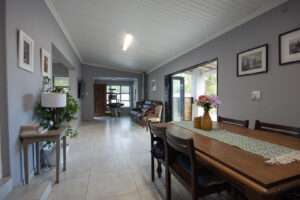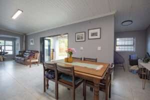 Charming Modern Two-Bedroom Home in the Heart of Heidelberg Perfectly positioned in central Heidelberg, directly behind the town’s biggest high school, this immaculate two-bedroom home offers a rare combination of prime location, modern comfort, and thoughtful design.   Whether you’re a young family, professional couple, or someone looking to downscale without compromising on quality, this home is one you’ll immediately connect with. You enter the property through an electric gate, where a paved driveway provides secure parking for two vehicles, complemented by a double garage.   A separate pedestrian gate leads you through a whimsical front garden, setting a welcoming tone before you step through a solid wooden front door into the entrance hall. From here, the home opens effortlessly into a modern, light-filled living space.   The open-plan family and dining room is both stylish and inviting, anchored by a contemporary fireplace that creates warmth and atmosphere during colder months. Large aluminium stacking doors allow this space to flow seamlessly onto a side stoep, perfect for relaxed entertaining or quiet afternoons enjoying fresh air.   Just off the dining area, the kitchen reveals itself as a true feature of the home. Designed in a modern country style, it strikes the perfect balance between charm and functionality. A central island with a breakfast nook invites casual meals and conversation, while saxon oak countertops, modern built-in cupboards, and a deep basin with a striking black pull-down spring faucet elevate the space. The kitchen is further equipped with a gas stove, electric oven, dishwasher connection, and thoughtful finishes that make both cooking and hosting a pleasure.   The home offers two well-proportioned bedrooms. The first bedroom is ideal as a guest room, child’s room, or hobby space, featuring built-in cupboards and modern finishes. The main bathroom is a standout, blending modern and rustic elements with a large basin set atop a vintage-style vanity, a private toilet, and a shower finished with exposed copper piping for a warm, character-rich touch.   At the end of the home, the main bedroom provides a peaceful retreat, comfortably accommodating a queen-size bed. It features built-in cupboards, tiled flooring, and a beautifully finished en-suite bathroom with a shower, toilet, basin, and the same distinctive copper detailing. Adding further versatility, a private office or reading nook is situated just off the dining room — an ideal work-from-home space or quiet corner to read and unwind.   An additional outside toilet at the back adds further convenience for keeping the main home uncluttered. Throughout the home, you’ll find modern tiled floors, aluminium windows, and a cohesive design that feels both current and timeless.   For peace of mind and sustainability, the property also includes a fully equipped alarm system with outdoor beams, a gas geyser, and a JoJo water tank.   This is a home where style meets practicality, set in a location that truly cannot be improved upon. A rare gem in Heidelberg — ready to be lived in and loved.