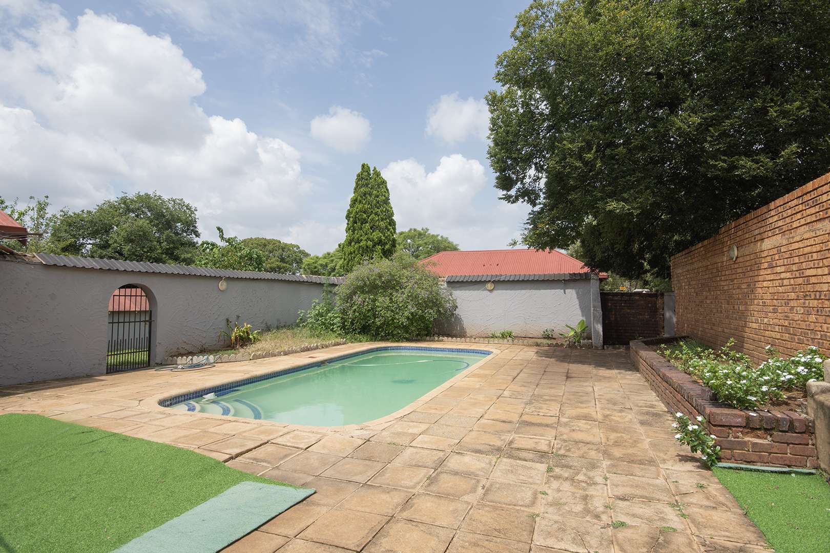 Introducing a stylish three-bedroom home in the heart of Heidelberg central. This neat residence offers modern living with generous indoor and outdoor spaces designed for family comfort and entertaining. Upon entry, you are greeted by an enormous living room that sets an inviting tone for the rest of the home. To your right, the open-plan kitchen boasts ample built-in cupboards, a separate wash-up area, and flows seamlessly into a large dining space alongside a cozy secondary family/entertainment area. Down the corridor, you'll find the first bathroom, followed by three well-sized bedrooms complete with built-in cupboards. The corridor culminates in a second bathroom, ensuring ease of access and convenience. Outside, the property truly shines with a large garden area featuring a built-in braai, a big swimming pool, and an enclosed braai room with a built-in bar—ideal for hosting gatherings. Additionally, adjacent to the garage, there is a double carport and a versatile outbuilding with a bathroom, offering plenty of potential for conversion into a flatlet or guest suite. This home combines functionality with style in a prime location, making it a perfect opportunity for those looking to embrace the vibrant lifestyle of Heidelberg central.