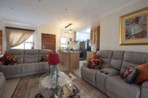 The 2-bedroom unit at Riversands Retirement Village is more than just a home; it is a thoughtfully designed space that combines modern living with comfort and security. From the moment you step inside, the stylish finishes and clever layout create a welcoming atmosphere. The kitchen, fitted with a gas stove, electric oven, and extra cupboards, is every chef’s delight. A linen cupboard in the passage offers smart storage solutions, while the main bedroom includes a TV point, making it perfect for relaxed evenings. For those who enjoy entertaining, the enclosed entertainment and braai room provides the ideal setting for hosting friends or simply enjoying a quiet afternoon with a good book. The lock-up garage with fitted cupboards adds extra value, offering ample space for tools, hobbies, or seasonal items.