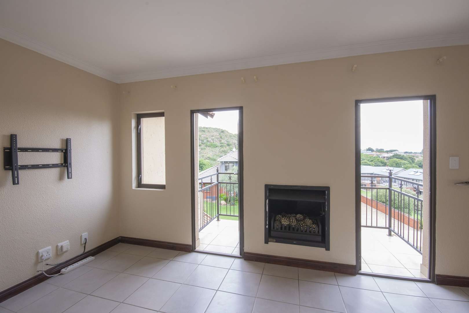 Upstairs, you’ll find three spacious bedrooms, all with built-in cupboards and tiled flooring for easy maintenance. The main bedroom is a standout feature, boasting its own fireplace and a private balcony with views of the scenic estate surroundings. Two modern bathrooms offer both luxury and convenience, each featuring a shower, bath, and double basin. The main bathroom is en suite, providing a private sanctuary for the homeowner.The property includes a double automated garage, offering direct access and secure parking. The small, low-maintenance garden enhances the home’s charm and provides space for outdoor relaxation without the hassle of extensive upkeep.