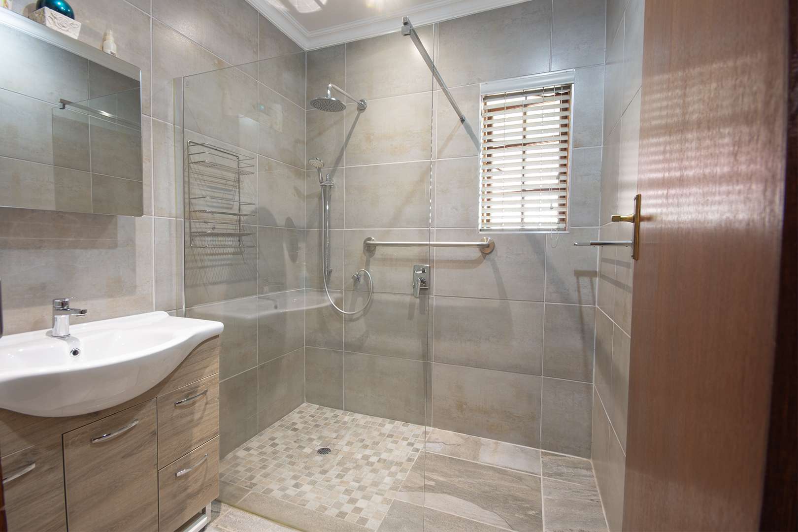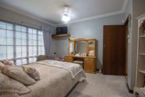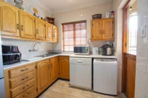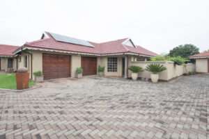 The home includes two generously sized bedrooms with built-in cupboards and soft carpeting, while the main bedroom serves as a peaceful retreat with ample storage space. Two well-appointed bathrooms—one with a bathtub and the other with a large shower—provide convenience for residents.A double automated garage ensures secure parking and the complex offers designated guest parking. The property is equipped with a 1,000L water tank and a 0.75kW pump for a consistent water supply, along with a Dyness 5.2kW battery and four 550W JA solar panels, enhancing its sustainability. For added security, the home features 7 CCTV cameras, with an additional camera ready for installation, a DVR system, a screen, and a 1TB hard drive for surveillance storage.