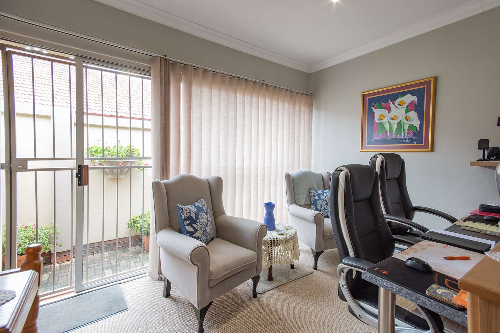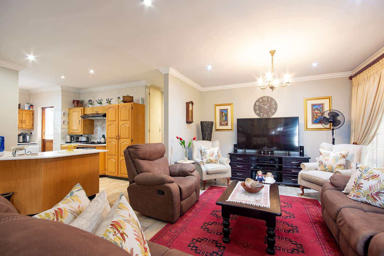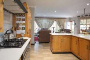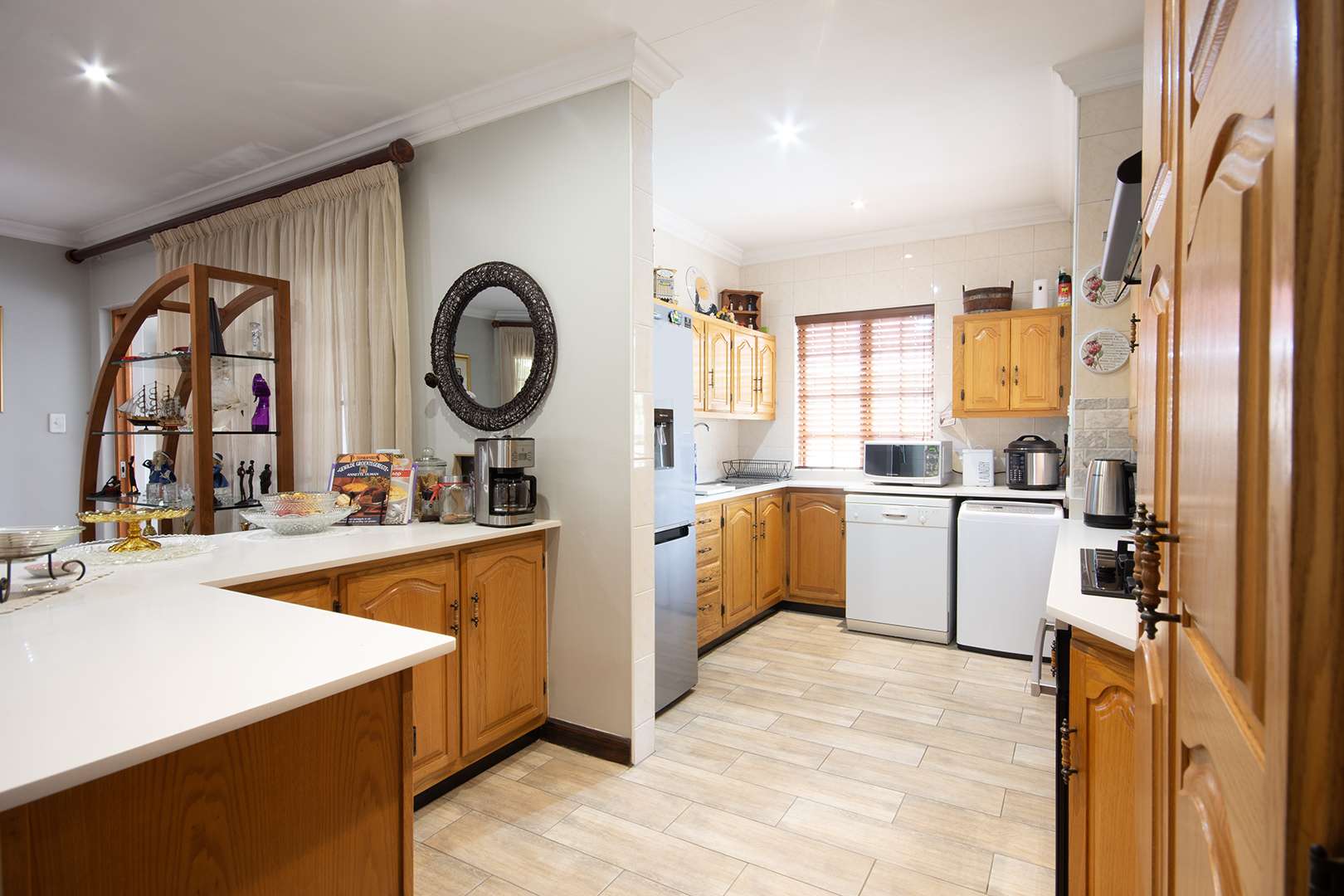 Situated on a 486m² stand, this low-maintenance, lock-up-and-go property is ideal for those looking to downsize without compromising on space. The open plan living area, consisting of a lounge, dining room, and kitchen, creates a seamless flow and a sense of spaciousness. The kitchen, featuring granite countertops, an electric stove, and an under-counter oven, is both functional and stylish, with ample built-in cupboards and space for essential appliances such as a washing machine and dishwasher.