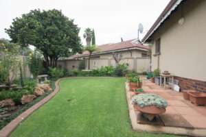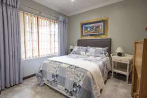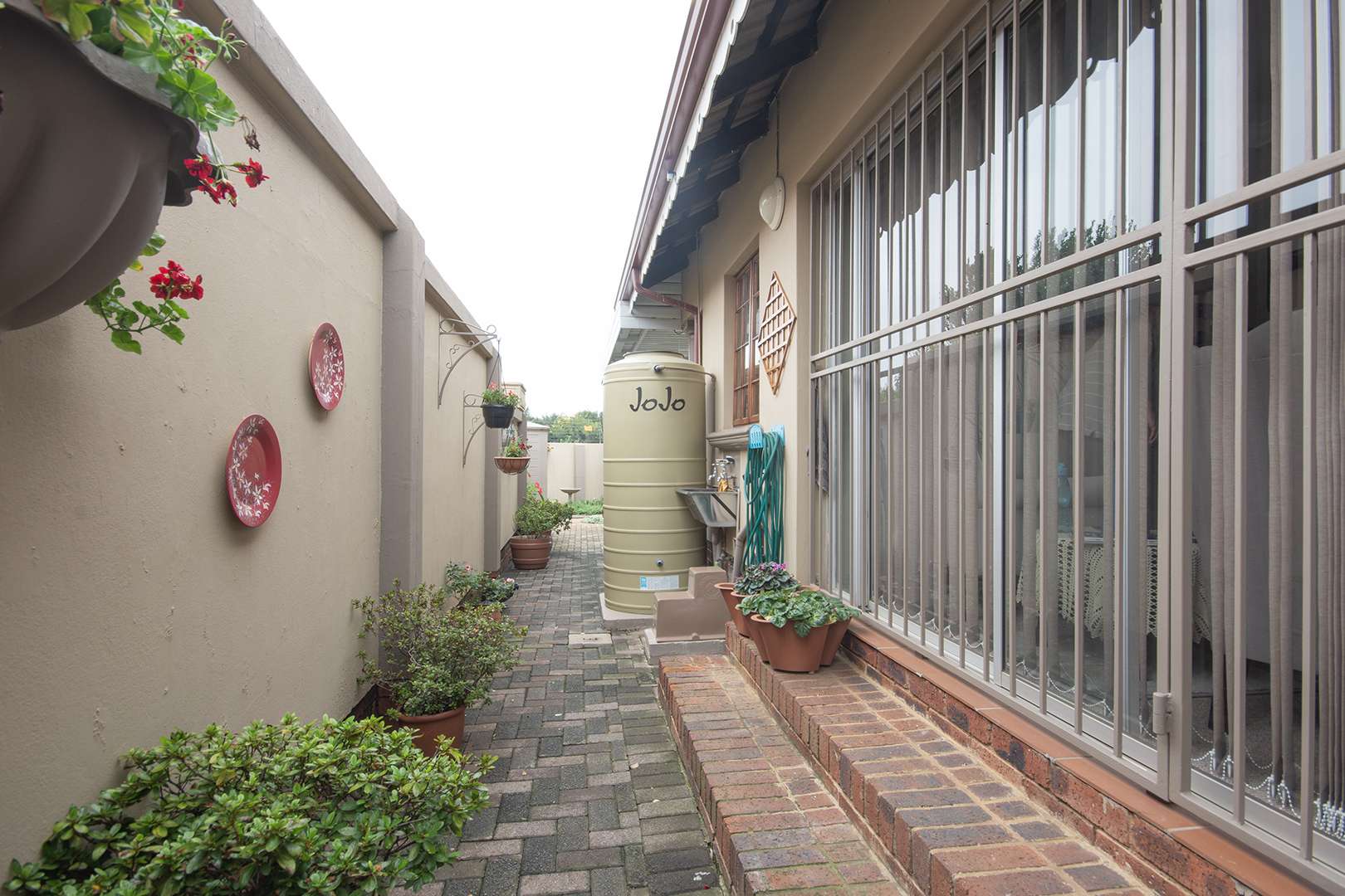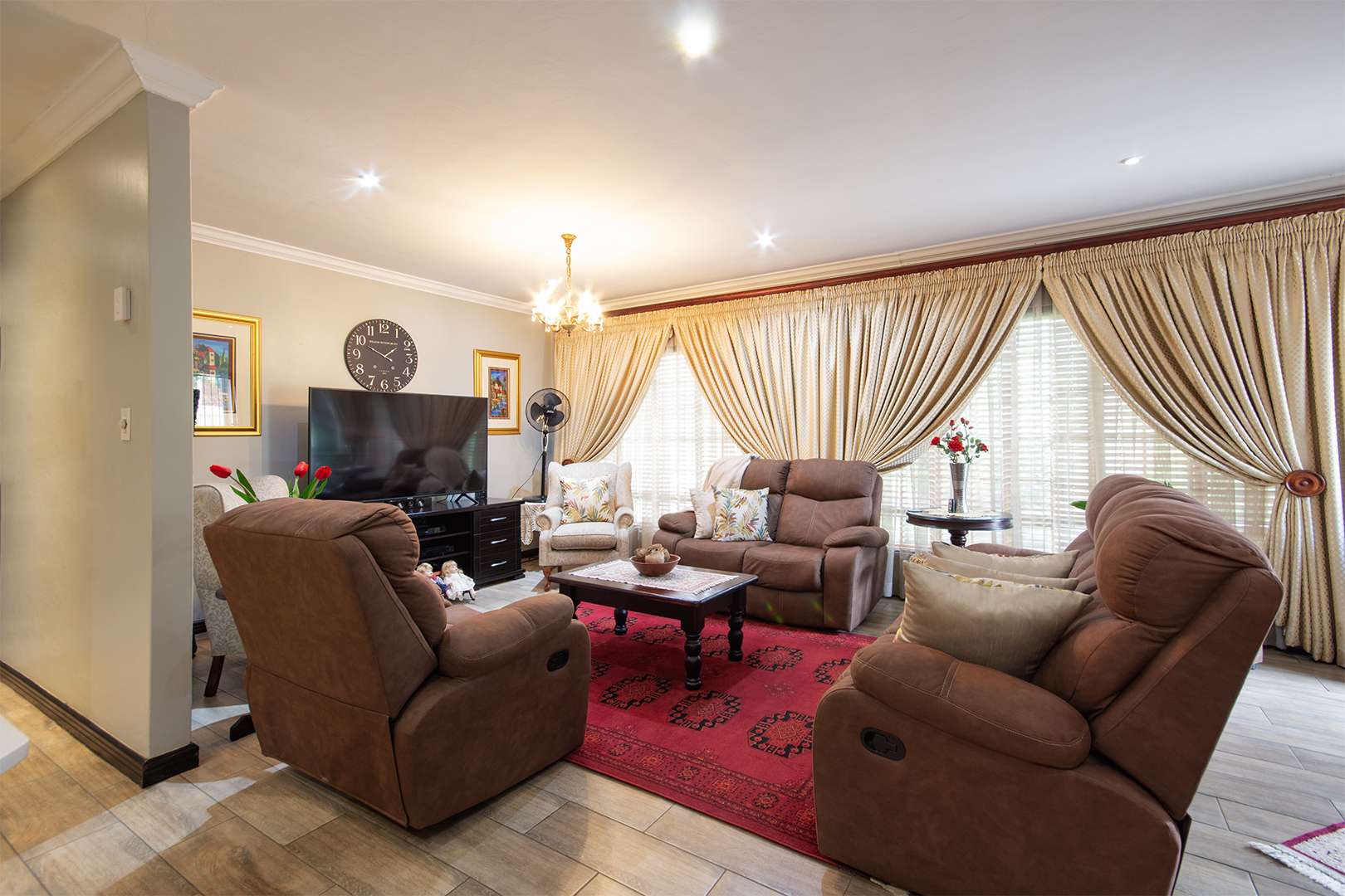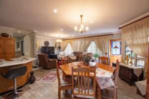 Situated on a 486m² stand, this low-maintenance, lock-up-and-go property is ideal for those looking to downsize without compromising on space. The open plan living area, consisting of a lounge, dining room, and kitchen, creates a seamless flow and a sense of spaciousness. The kitchen, featuring granite countertops, an electric stove, and an under-counter oven, is both functional and stylish, with ample built-in cupboards and space for essential appliances such as a washing machine and dishwasher.