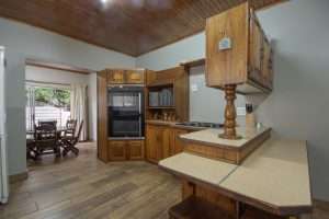 • Spacious kitchen with beautiful wooden cupboards and ample storage