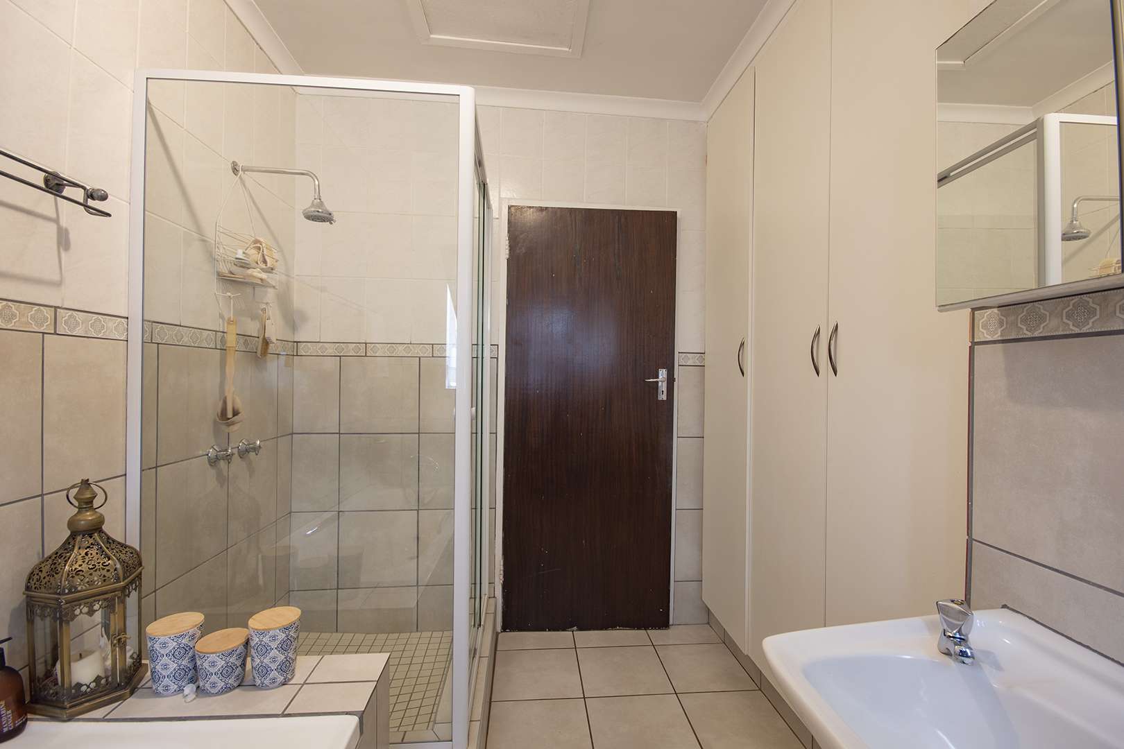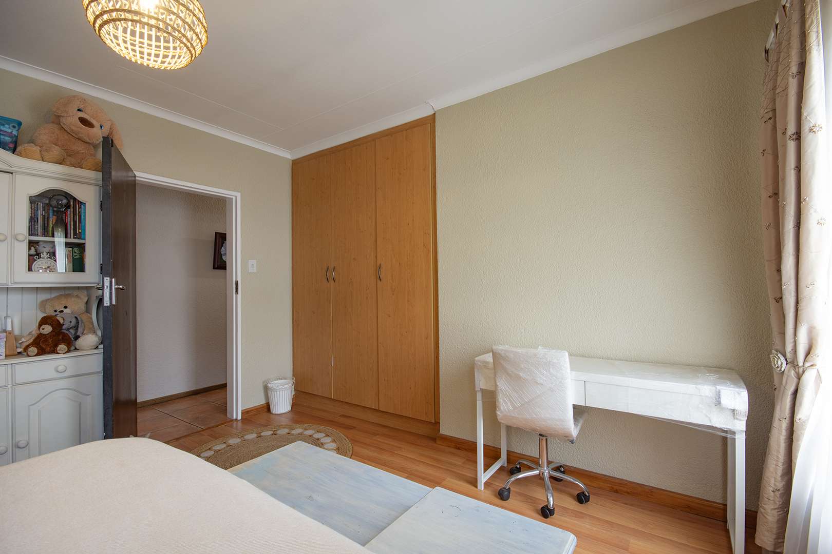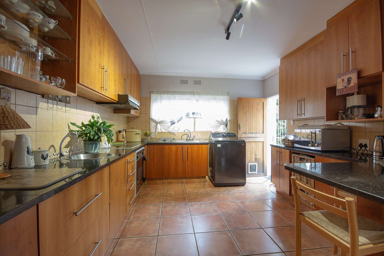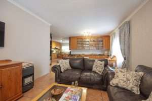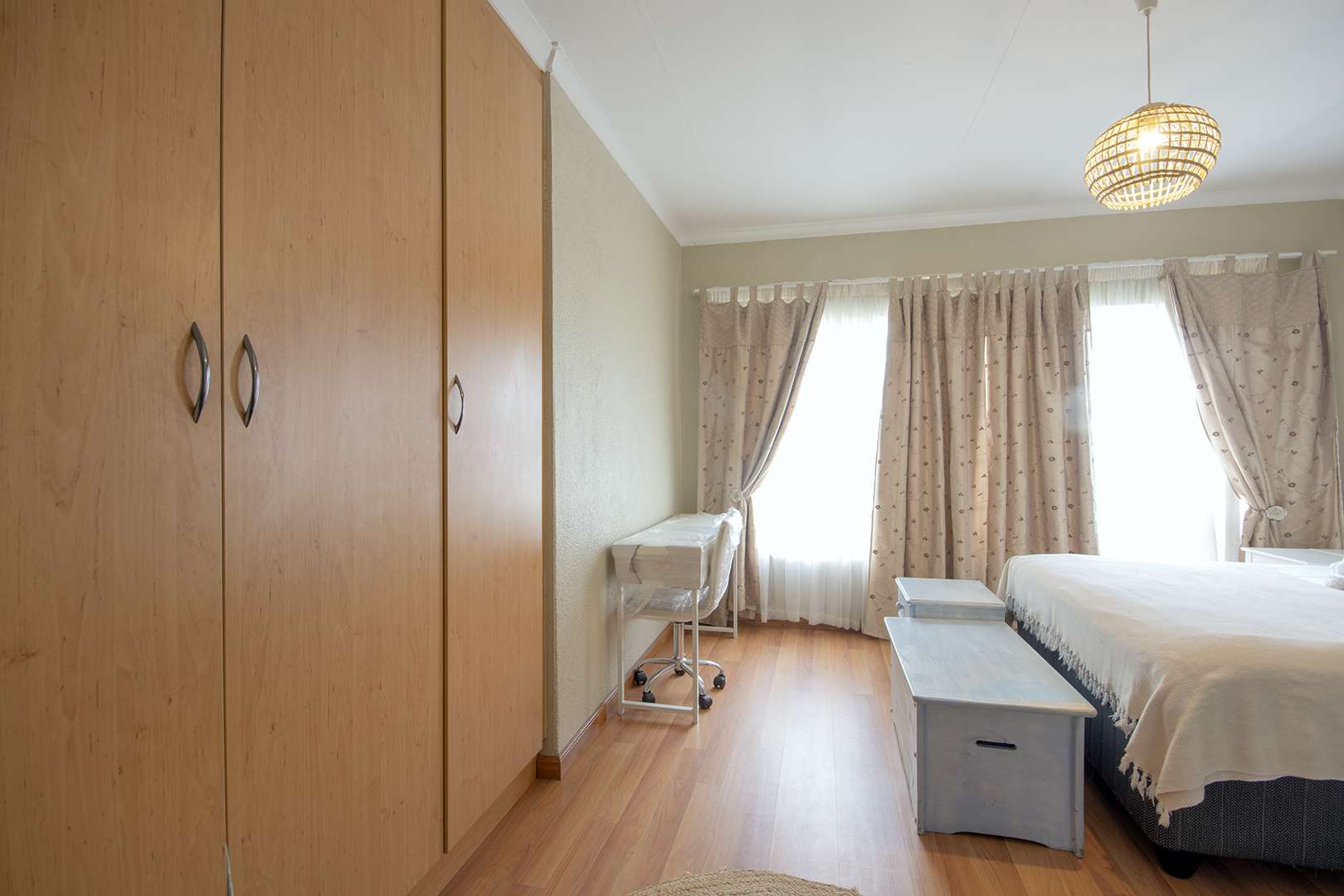 Accommodation includes three comfortable bedrooms with built-in cupboards and laminated flooring, complemented by two full, tiled bathrooms. The main bedroom enjoys the privacy of an en-suite bathroom. A versatile fourth room serves perfectly as a study or home office, catering to today’s work-from-home lifestyle.