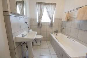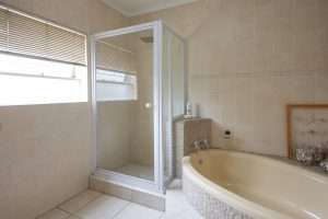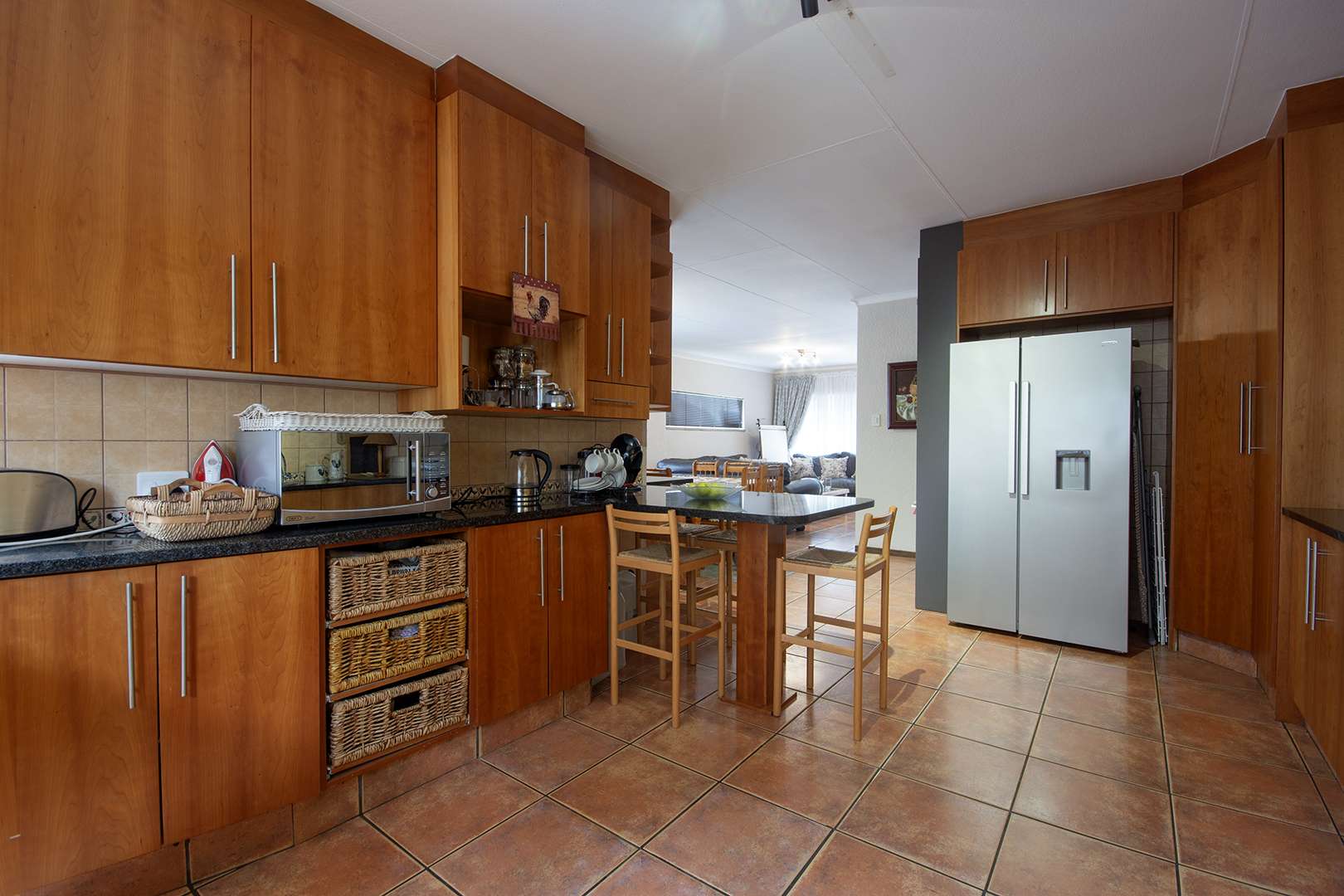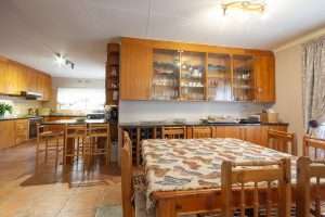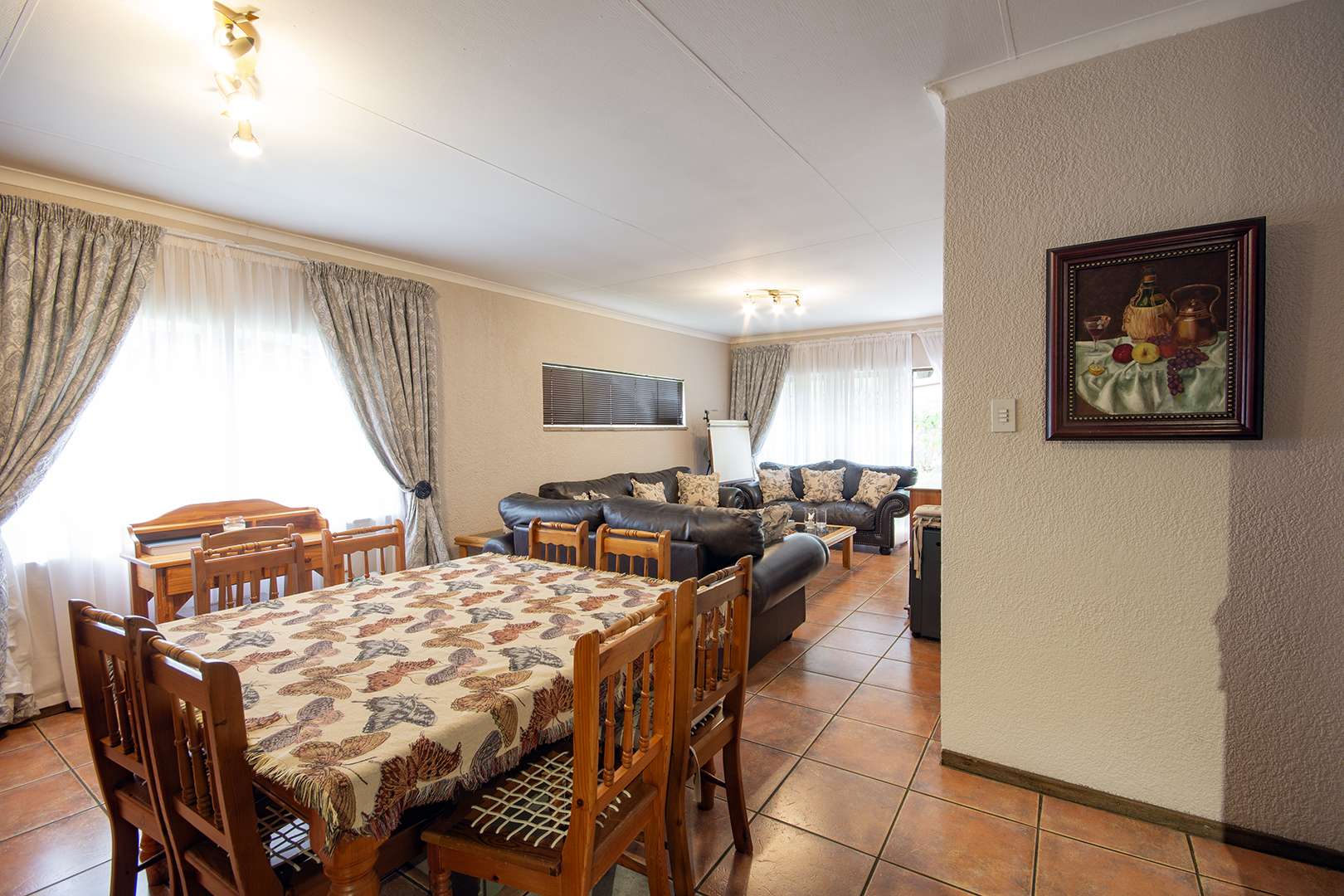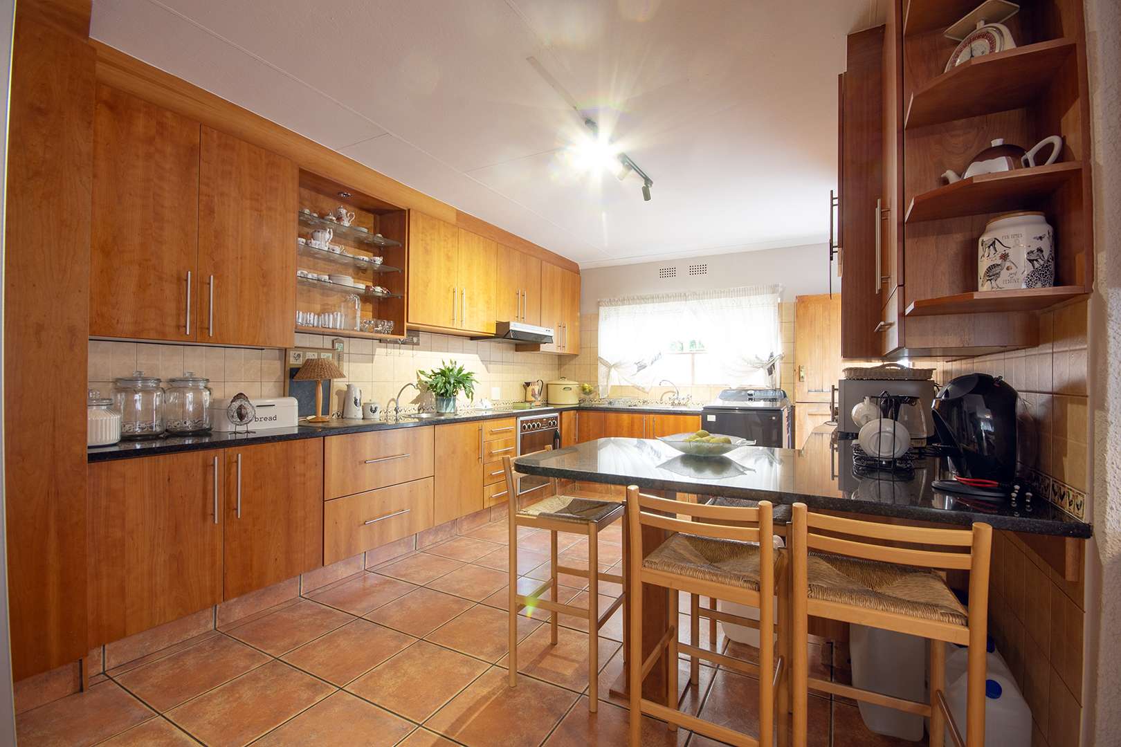 Accommodation includes three comfortable bedrooms with built-in cupboards and laminated flooring, complemented by two full, tiled bathrooms. The main bedroom enjoys the privacy of an en-suite bathroom. A versatile fourth room serves perfectly as a study or home office, catering to today’s work-from-home lifestyle.