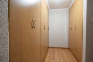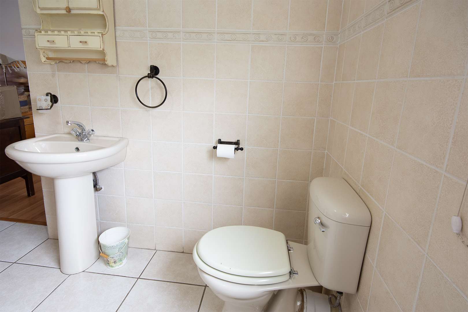 The heart of the home is the well-appointed kitchen, fitted with granite countertops, extensive wooden cabinetry, an oven, hob with extractor fan, and a practical breakfast nook. There is ample space for a double-door fridge, a double sink, and connections for appliances such as a washing machine, making this kitchen both functional and stylish. Additional cupboards in the dining area add valuable storage.