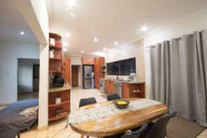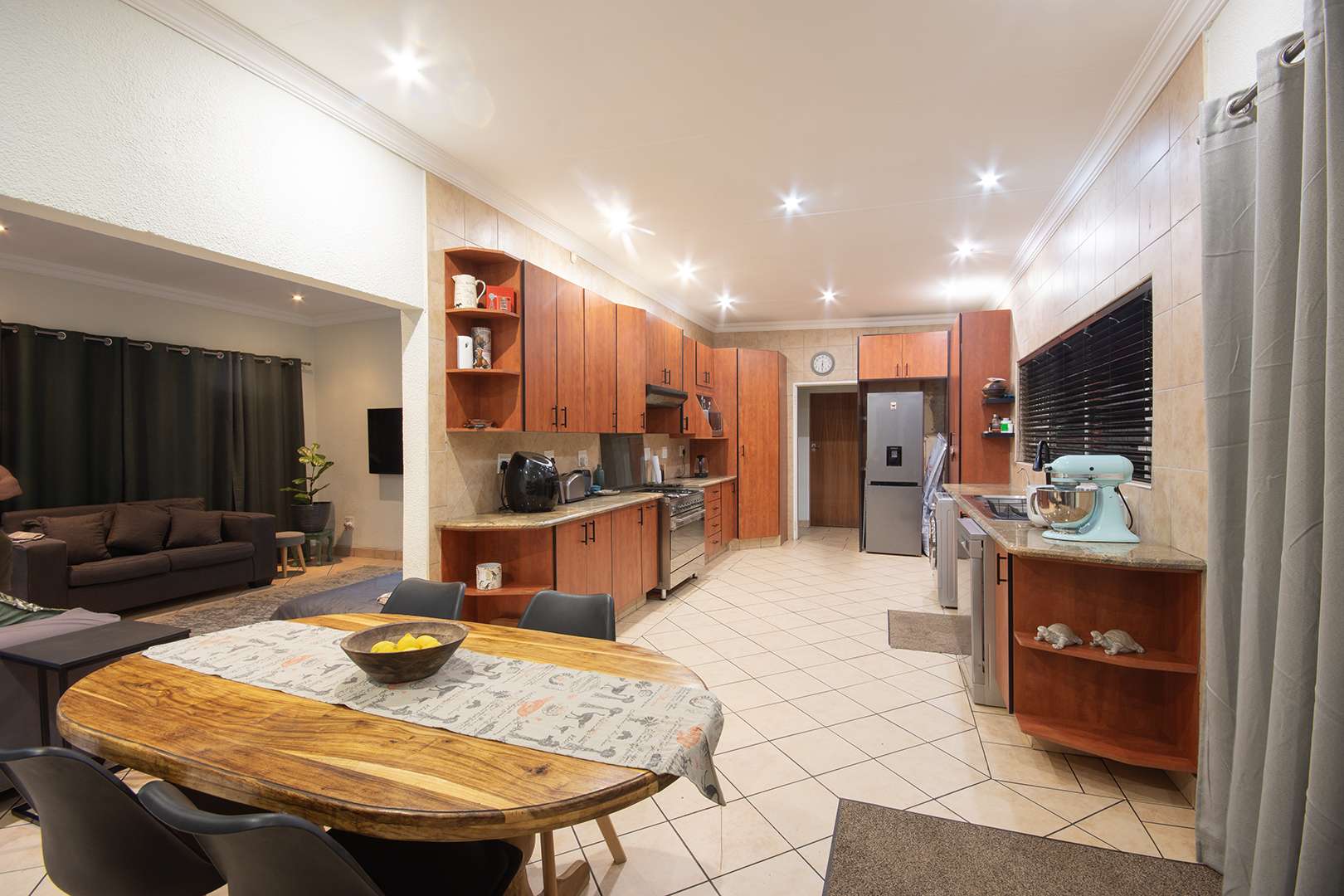 Modern Family Comfort with Garden Charm in Heidelberg Central Proudly presented by Lelanie At Howell Properties Tucked away in the heart of sought-after Heidelberg Central, this beautifully modernised three-bedroom home offers the perfect blend of stylish finishes, functional spaces, and outdoor charm—all on a generous 1,487m² stand. From the moment you arrive, the property invites you in with its double garage, double-length carport, and crisp black trims that frame the house’s modern aesthetic. Step through the gate and to your left, you’ll discover a tranquil garden pond—an unexpected little oasis that adds character and calm to your daily life. Inside, you're welcomed by a spacious, air-conditioned family room that flows effortlessly into a dining area and a sleek, plan kitchen. The kitchen is a chef’s dream—fitted with rich wooden cupboards, ample appliance space, and a large gas stove for effortless cooking. A modern study offers a quiet space to work or read, leading to an entertainer’s dream: a built-in braai area complete with bar counter, sink, water bowl, and space for a fridge—all enclosed with sleek aluminium windows. Whether you're hosting weekend get-togethers or simply enjoying a peaceful evening in, this space was built to be enjoyed. On the left wing of the house, privacy and rest await. The main bedroom is impressively sized for a king-size bed and features a full wall of built-in cupboards and a contemporary ensuite bathroom with double vanities, a large walk-in shower, and a sophisticated finish. The main bedroom is also fitted with air conditioning for year-round comfort. Two additional bedrooms, each spacious and fitted with built-in cupboards, share a second full bathroom with both bath and shower—also newly renovated with a fresh, modern touch. Outside, the lush garden stretches around the home, offering a large grassy expanse perfect for kids, pets, or even future additions. Two JoJo tanks ensure sustainable water use, while a borehole adds further independence and value. There's also a handy Wendy house for storage, and a versatile outside room that could be transformed into a guest suite, office, or income-generating flatlet. Are you going to put your name on this house?