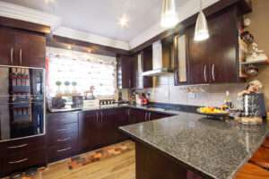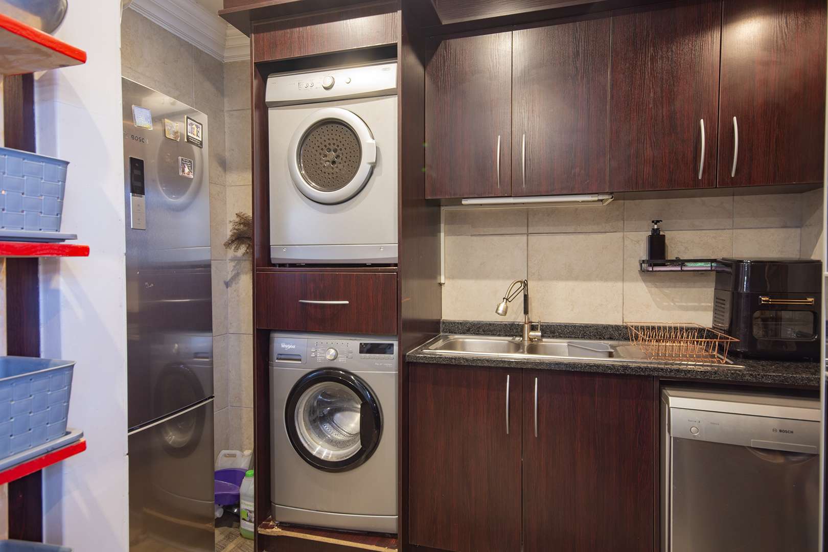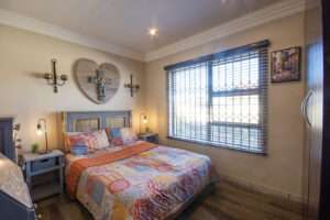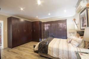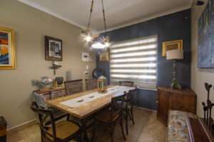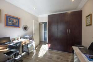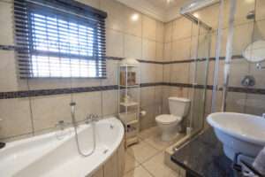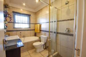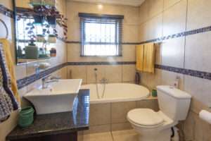 Accommodation includes three generously sized bedrooms, each offering built-in cupboards and a peaceful retreat from the day’s hustle and bustle. The master bedroom features an en-suite bathroom with a shower, bath, basin and toilet while the second bathroom, equally neat and modern, is equipped with both a bath and shower to suit the whole family’s needs.