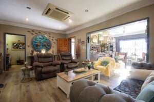 Outside, the property continues to impress with a double carport that offers covered parking for two vehicles. The surrounding yard is neat and well-maintained, offering just enough green space for a garden without the upkeep becoming a burden. Whether it’s sipping morning coffee on the patio or enjoying an afternoon braai with friends, this outdoor area is perfectly suited for enjoying the quiet lifestyle Bergsig has to offer.