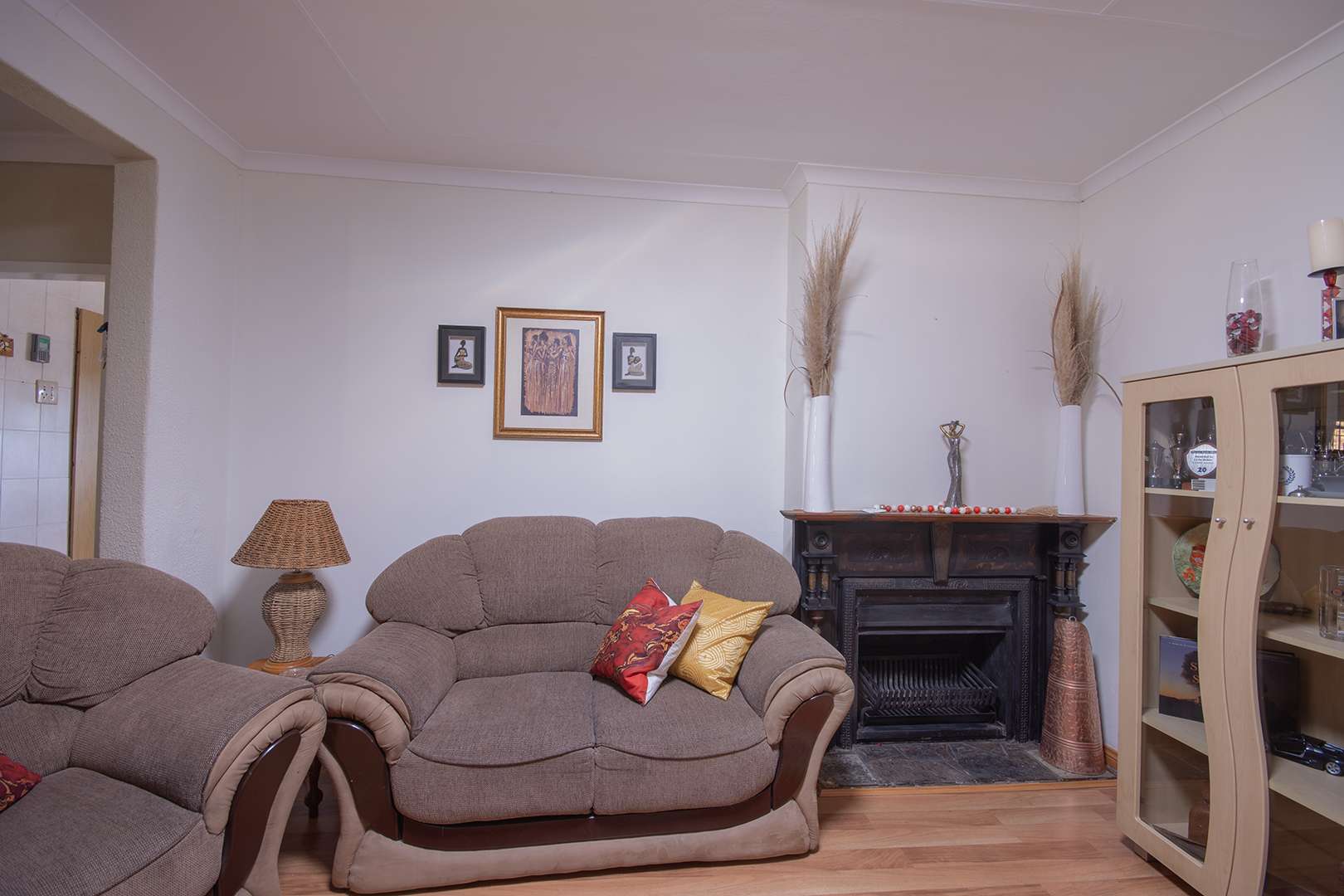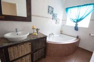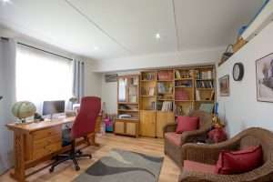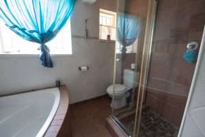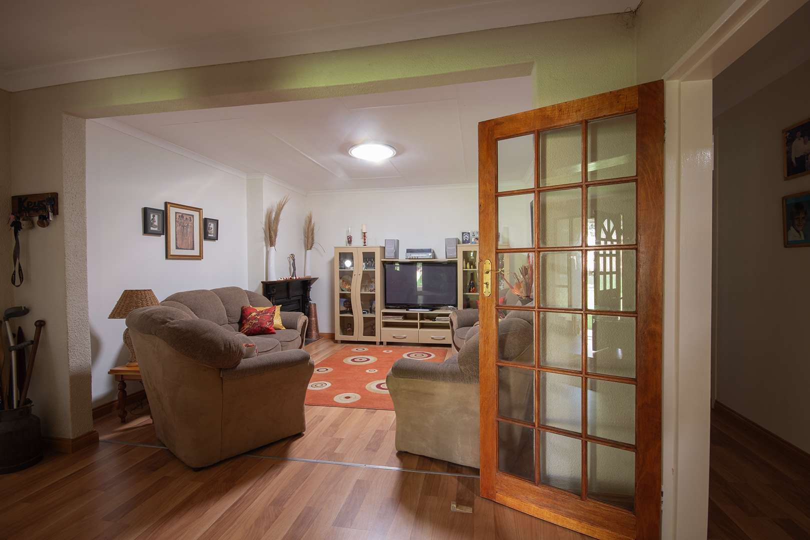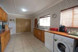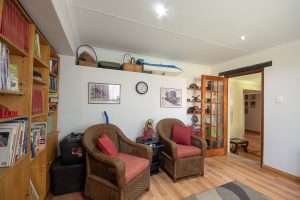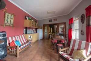 The main house welcomes you with an entrance hall leading into spacious living areas. One of the lounges features a cozy fireplace, while the second lounge is tiled and ideal for relaxed family living. A large study provides flexibility and can easily be used as an additional bedroom.