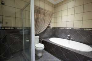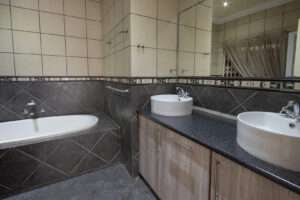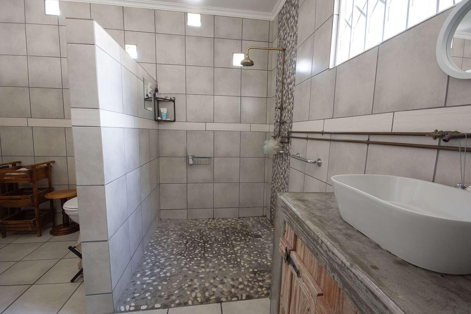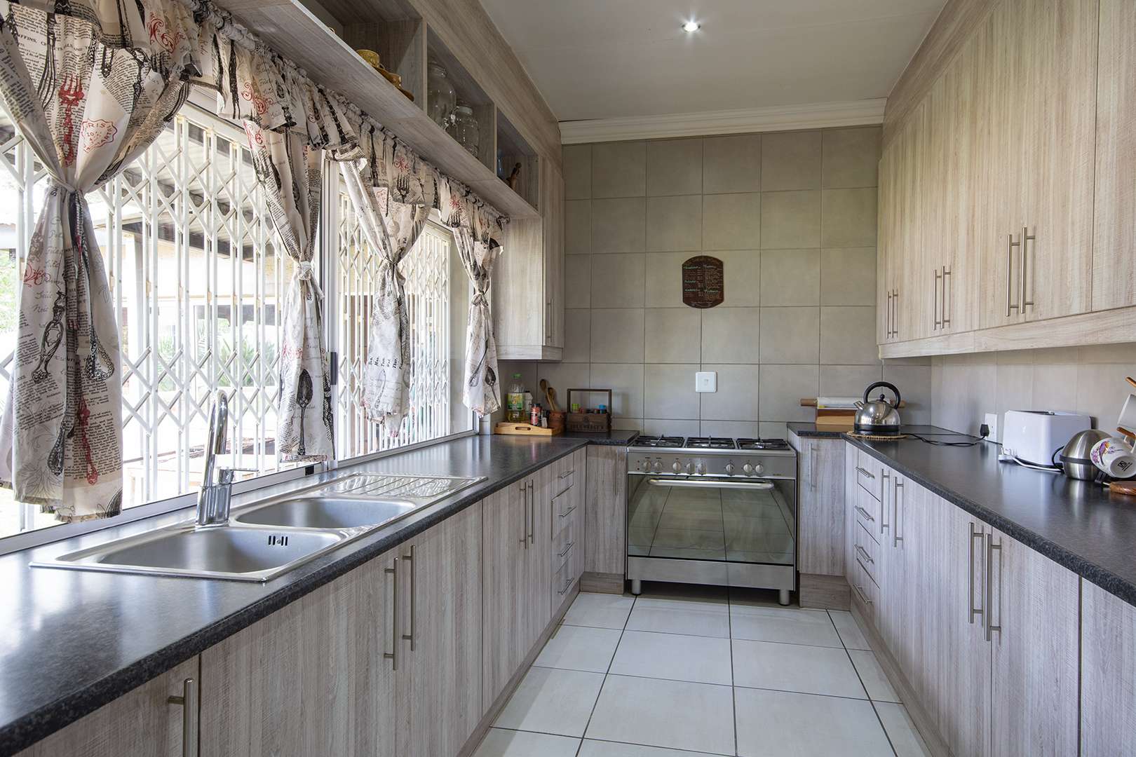 The kitchen is fitted with ample cupboard space and a gas stove — a perfect blend of functionality and style for the avid cook.The home features three well-sized bedrooms, all with built-in cupboards. There are three modern bathrooms, with the main bedroom boasting an en suite complete with bath, shower, and double basin. A second bedroom also enjoys its own en suite with a shower, while the third bathroom is fitted with both a bath and a shower, providing convenience for the whole family.
