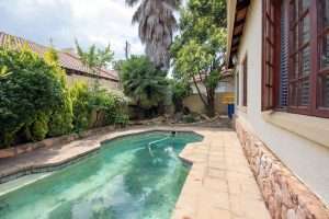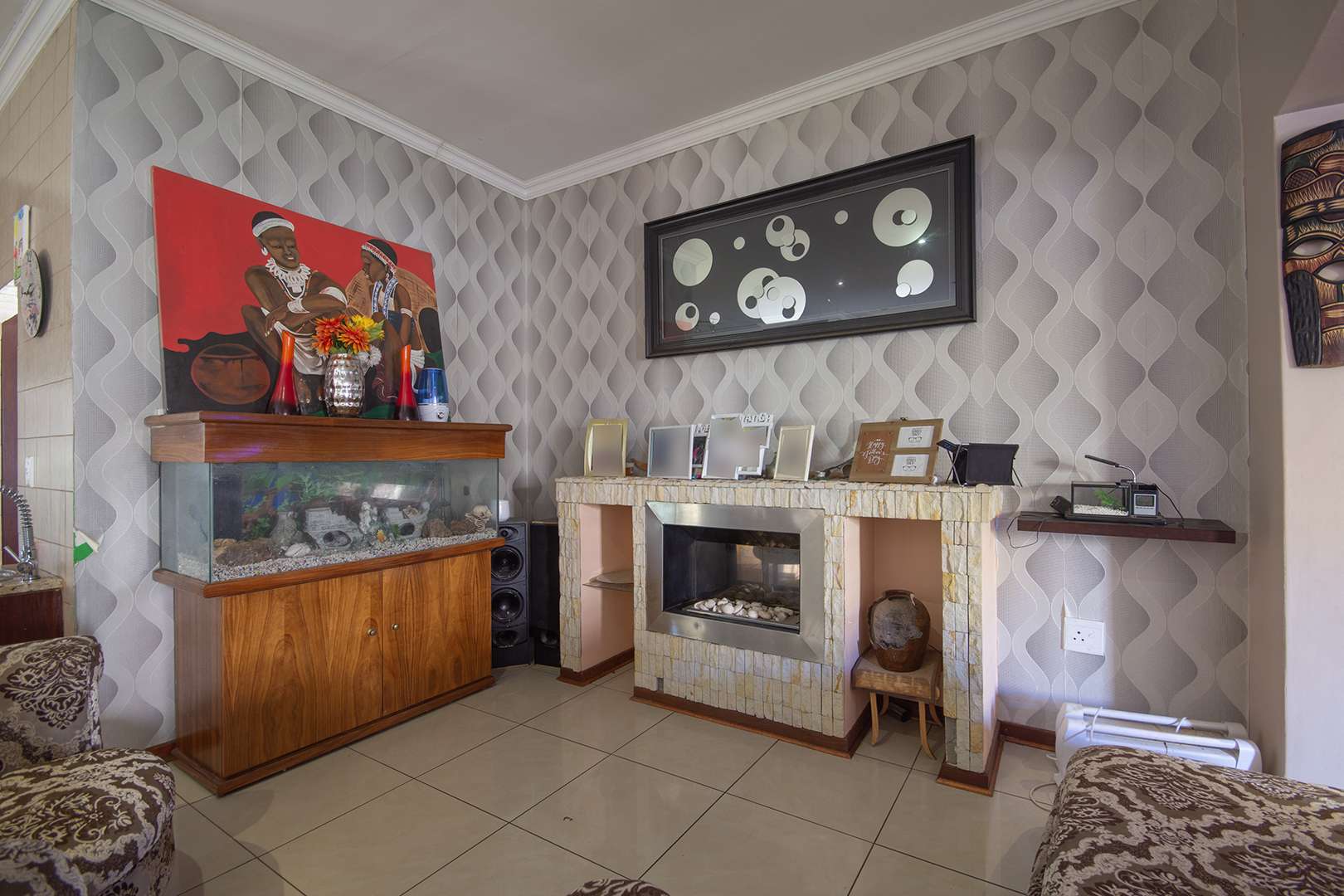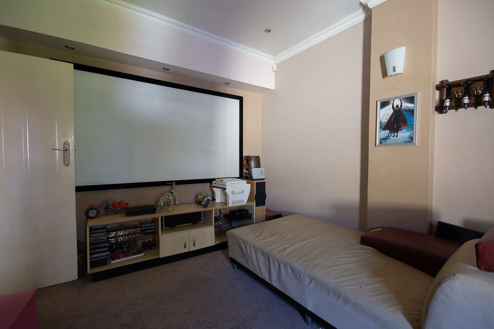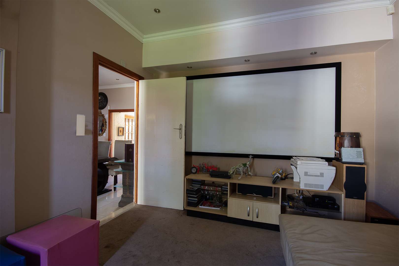 A separate TV room, complete with a projector included, provides the perfect setting for family movie nights or relaxed entertainment. From the dining room, sliding doors open onto a covered patio with a built-in braai, ideal for hosting guests and enjoying indoor-outdoor living. The kitchen, lounge, dining room, and TV room are tiled for easy maintenance, while the study is comfortably carpeted.