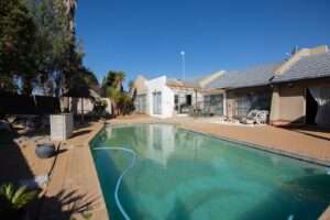 Welcome to your dream home in the serene neighborhood of Visagiepark, Nigel! This spacious house boasts five bedrooms and two bathrooms, offering ample room for your family to grow and thrive. As you step inside, you'll be greeted by a modern, upgraded kitchen featuring sleek melamine countertops and a versatile cooking setup with both electric and gas options. The living spaces are designed for comfort and style, with a tiled lounge/TV room equipped with air conditioning for those warm summer days. The dining room, also tiled, provides the perfect setting for family meals and entertaining guests. But it's the outdoor space that truly sets this property apart. Imagine lounging by your very own marbelite pool, hosting barbecues in the lapa, or watching the kids play on the included Jungle gym. The expansive 1052m² stand offers plenty of room for outdoor activities and gardening enthusiasts. Security is a top priority, with features including an alarm system, burglar bars, outside beams, and an electric gate. The property also boasts modern conveniences like fiber internet connectivity. For the car enthusiasts, there's a double garage and a three-car carport, ensuring your vehicles are always protected. Additional perks include two Wendy houses, perfect for storage or a home office, and two electric geysers for efficient hot water supply. With its combination of comfort, space, and modern amenities, this house is more than just a property – it's a place to create lasting memories and call home sweet home. Don't miss this opportunity to make it yours!